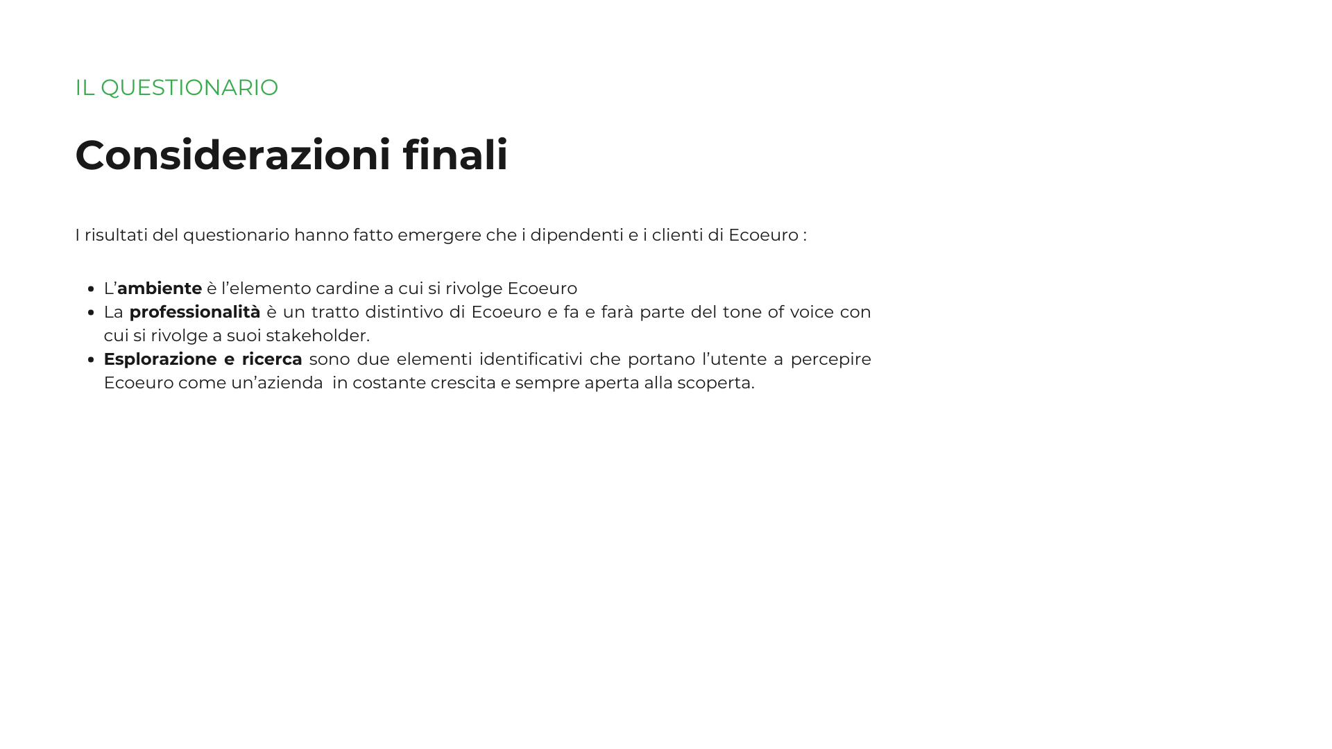 Successivamente è stato elaborato un questionario rivolto a una platea di stakeholder di Ecoeuro.