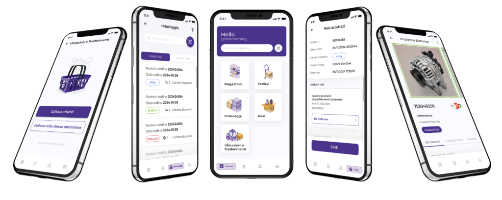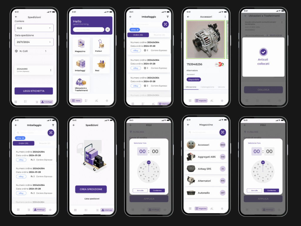 La richiesta era di progettare un’app dedicata agli operatori di magazzino incaricati della gestione degli ordini e della spedizione di ricambi auto usati.